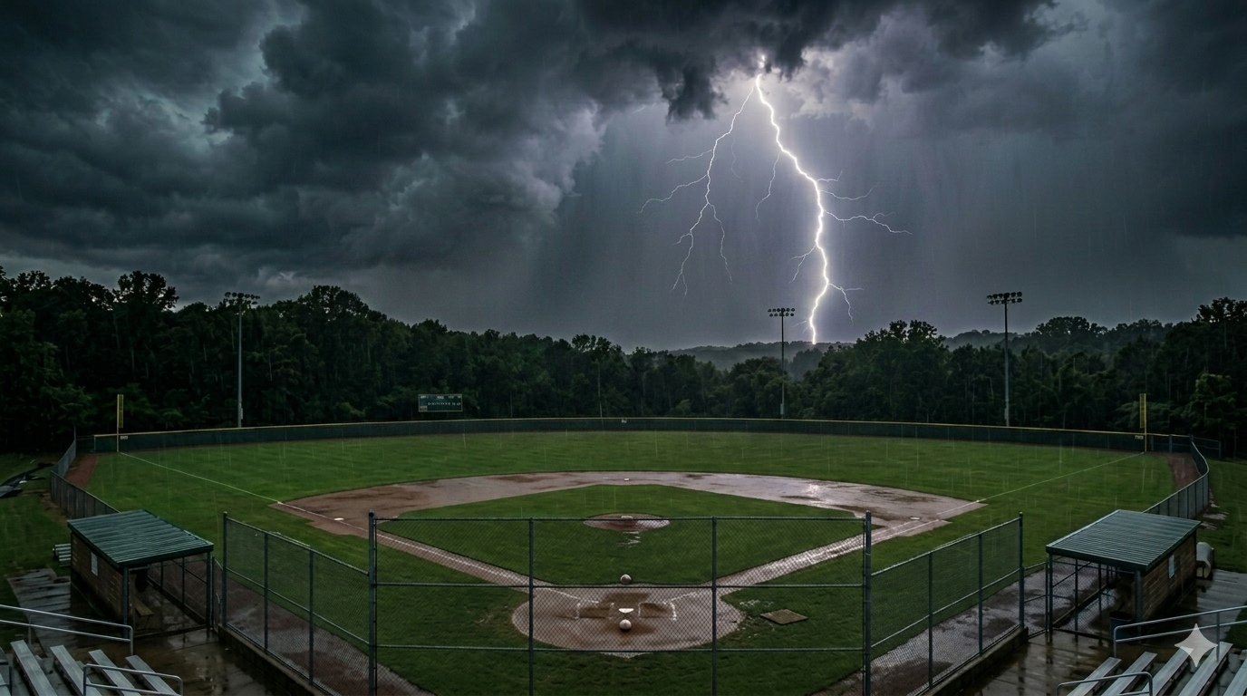 • Fields without the Lightning Alert System: When thunder is heard, or a cloud–to-ground lightning bolt is seen, the thunderstorm is close enough to strike your location with lightning. Suspend play for at least 30 minutes and take shelter immediately.